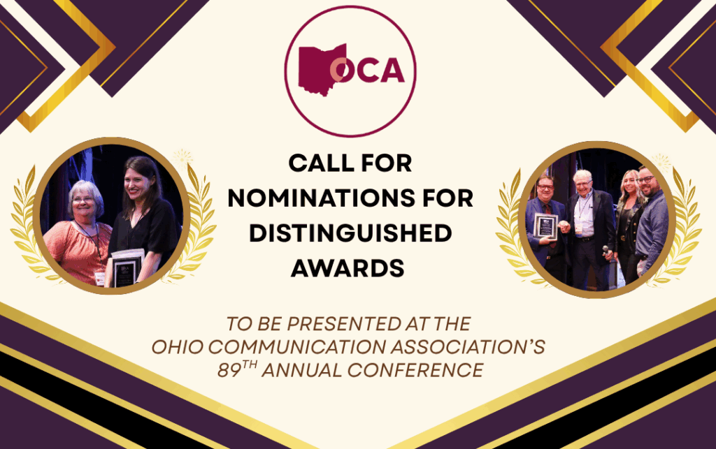 You are cordially invited to nominate outstanding communicators in the state of Ohio for recognition at the OCA Annual Conference and Awards Banquet, Friday, October 10, 2025, at Ohio Wesleyan University in Delaware, Ohio. All nominations should meet the criteria outlined below and provide documentation of outstanding service and commitment to the discipline.